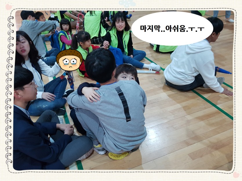 2017.11.4일 백제중학교 강당에서 체력증진 프로그램 마지막 회기가 실시되었다. 신나는 멘토링 게임 과 체육대회로 마지막의 아쉬움을 달래는 자리가 되었다.