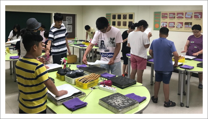 참가자 13명은 첫날(6일)과 둘째날(7일) 복지관 강당에서 실내컬링과 한궁, 닌텐도 e-스포츠 등 신체활동을 실시하였고 셋째날인 오늘(8일)은 국립부여박물관 내 "어린이 박물관"에서 탑본 부채 만들기 체험활동에 참여하였습니다.