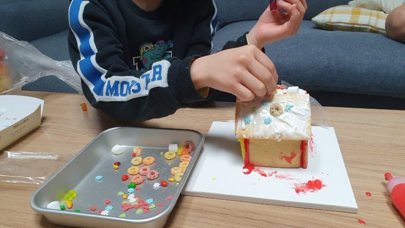 가족과 함께 할 수 있는 행복한 크리스마스를 선물하고자 우양재단의 지원을 받아서 "크리스마스 케이크, 과자집만들기 키트"를 20가정에 지원하였습니다. 달콤한 케잌도 먹고 과자집만들기를 가족과 함께 하면서 즐거운 시간을 보낼 수 있었다고 합니다.