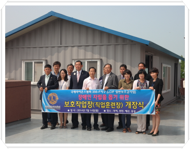ㅇ 일시 : 2014. 7. 14(월) ㅇ 후원 : 국제라이온스협회365-F지구 충남·세종지구 ㅇ 내용 : 1,500천원 후원금 지원으로 보호훈련실 공간 마련