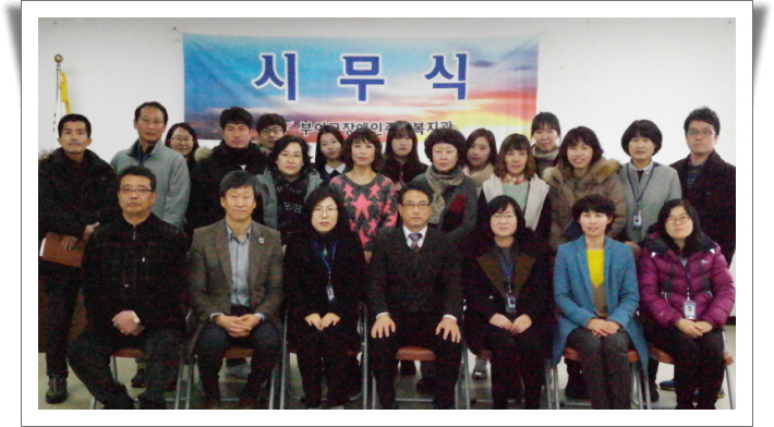 2015년 복지관 시무식이 1월2일 강당에서 진행되었다. 을미년 청양띠를 맞이하여 전 직원이 새로운 각오를 다짐하고 장애인 복지를 위한 힘찬 구호를 외치며 새해 첫 날을 밝혔다.