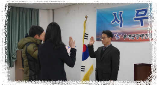 2016년 새해 첫 월요일 복지관 전 직원이 참여한 가운데 "직원행동지침"을 선서하고 앞으로 복지관 발전과 이용장애인을 위해 열심히 노력할 것을 다짐하는 시무식이 진행되었다.