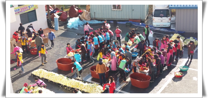 11월28일(월)~29일(화) 이틀간 복지관에서는 사랑의 김장담그기 행사가 열렸다. 첫 날 적십자, 한국조폐공사, 한전, 개인봉사자 등 60여명은 이른 아침부터 복지관에서 배추손질, 절이기, 속재료 준비 등을 맡아주었고 둘째날 한국인삼공사 고려인삼창, 롯데아울렛, 부소라이온스, 재향군인회, 개인봉사자 등 60여명은 절인배추손질과 배추속넣기로 김장을 마무리해주었다. 이날 담근 1,000여포기의 김장김치는 부여군 내 120여 장애인 가정에 지원된다. 사랑의 김장담그기 행사에 참여해 봉사해주신 지역 내 기관과 단체, 개인 봉사자 등 많은 분들께 진심으로 감사를 드립니다.