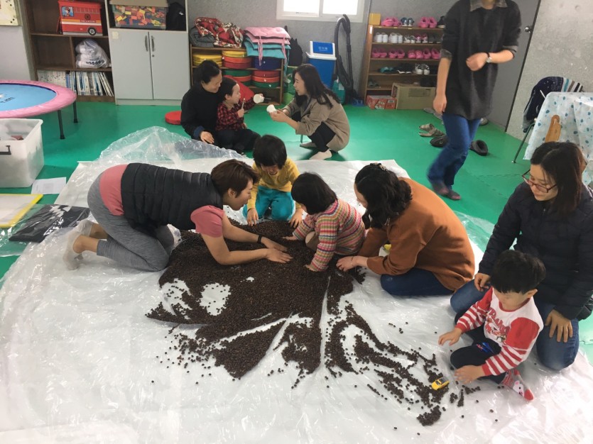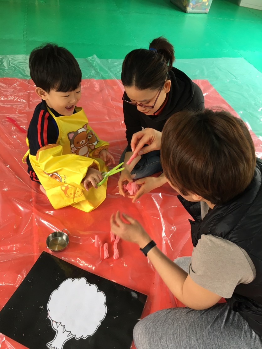 1회기-커피콩 2회기-개구리이야기 3회기-두부수업 4회기-도우샌드 모두 오감을 자극하는 디양한 활동들로 구성되어 즐거운 시간보냈습니다.