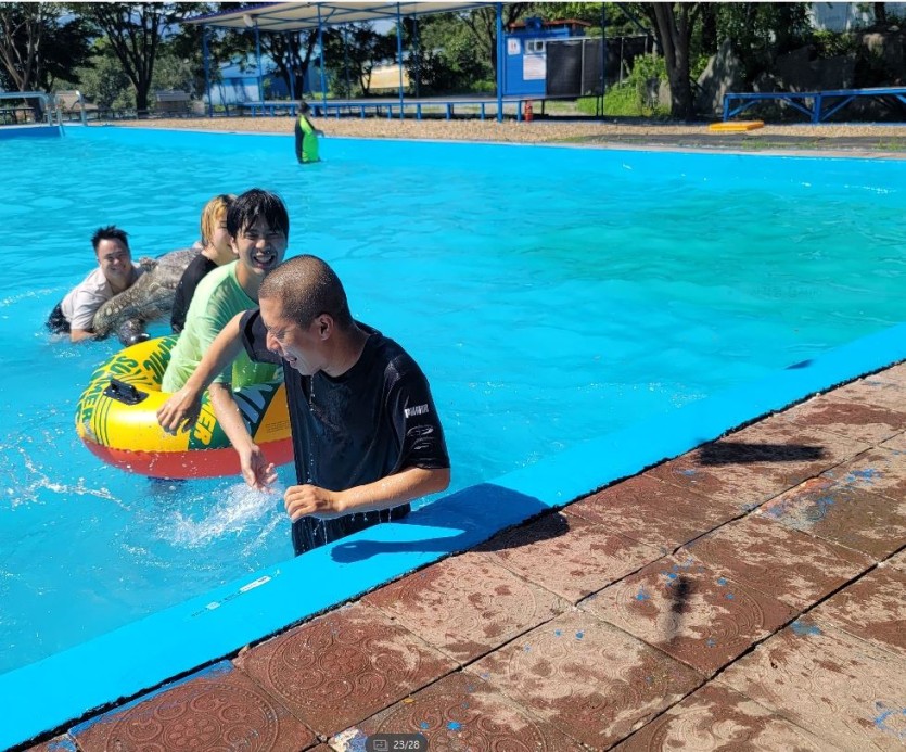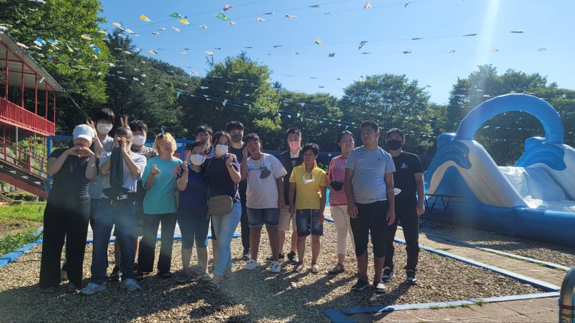 오늘 (2022.8.17) 장애인복지일자리-참여형 참여자 야유회(물놀이) 활동이 남면관광농원 수영장에서 실시되었습니다.