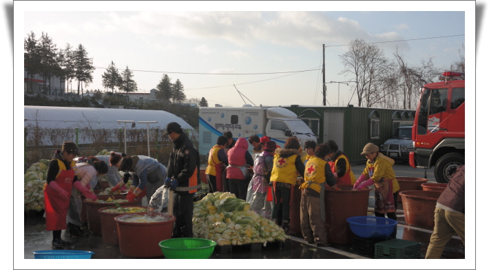 2014 사랑나눔 김장김치 담그기가 12월1일~2일 이틀간 복지관 주차장에서 진행돼었습니다. 김장을 위해 지역내 봉사단체(재향군인회, 부여군적십자회, 용당교회, 동방교회, 은산교회, 송학교회 등) 및 개인봉사자분들 직원들이 함께 참여하여 사랑과 정성이 듬~쁨 담긴 맛있는 김치를 담그었습니다. 춥고 촣치않은 일기에도 많은 분들이 오셔서 장애인 분들을 위한 김장을 맛있게 담그었습니다. 또안 부여소방서에서 소방차를 지원해주셨습니다. 모든 분들께 감사함을 전하며 감사한분들이 있어 우리지역내 장애인분들이 따뜻한 겨울을 보낼수있게 돼어 습니다 .
