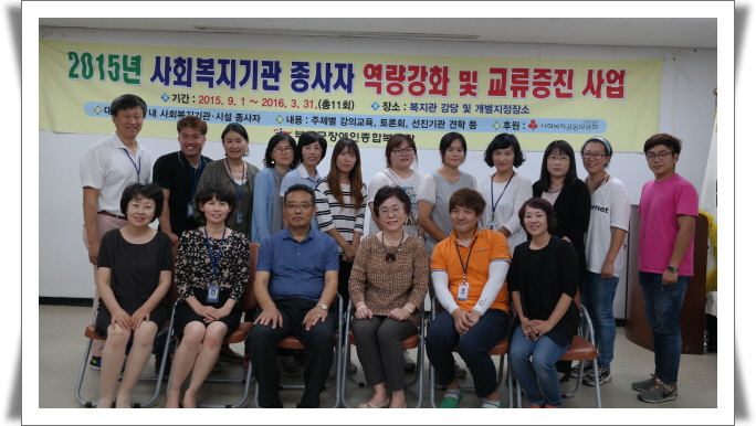9월 첫날 복지관에서는 사회복지기관시설 종사자 역량강화 및 교류증진을 위한 "그물코 배움터" 사전모임이 실시되었다 지역 내 복지기관 종사자들의 역량을 강화하고 네트워크 활성화를 도모하기 위하여 계획된 이번 사업은 충남사회복지공동모금회 지원으로 실시되며 부여군장애인종합복지관, 동산노인복지센터, 부여지역자활센터, 부여 복지마을, 부여노인요양원(성심원), 삼신보육원 등 6개기관 30여명이 함께 할 예정이다.