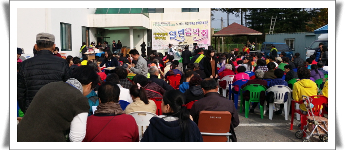 11월7일(월) 복지관 주차장에서는 장애인과 지역민 등 200여명이 함께 한 가운데 "열린 음악회"가 열렸습니다. 대한가수협회충남지회와 한국장애인녹색환경충남협회의 후원으로 진행된 이 날 행사에서 협회 소속 가수들은 노래와 색서폰 연주, 전통무용 등을 선보이며 흥을 높였고 장애인녹색환경회원분들은 현장에서 직접 핫도그와 튀김을 만들어 오신분들께 나눠드리는 등 즐겁고 풍성한 시간이었습니다. 앞으로 복지관은 두 단체와 협약을 통해 매년 지속적으로 장애인과 지역민을 위해 즐거운 자리를 마련할 것을 약속했습니다.