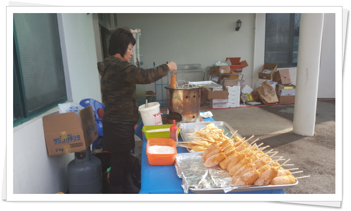 일시 : 2017. 2. 23(목) 10:00 ~ 장소 : 복지관 주차장 내용: 황○○ 님의 재능기부로 핫도그180개 나눔행사를 실시하였다