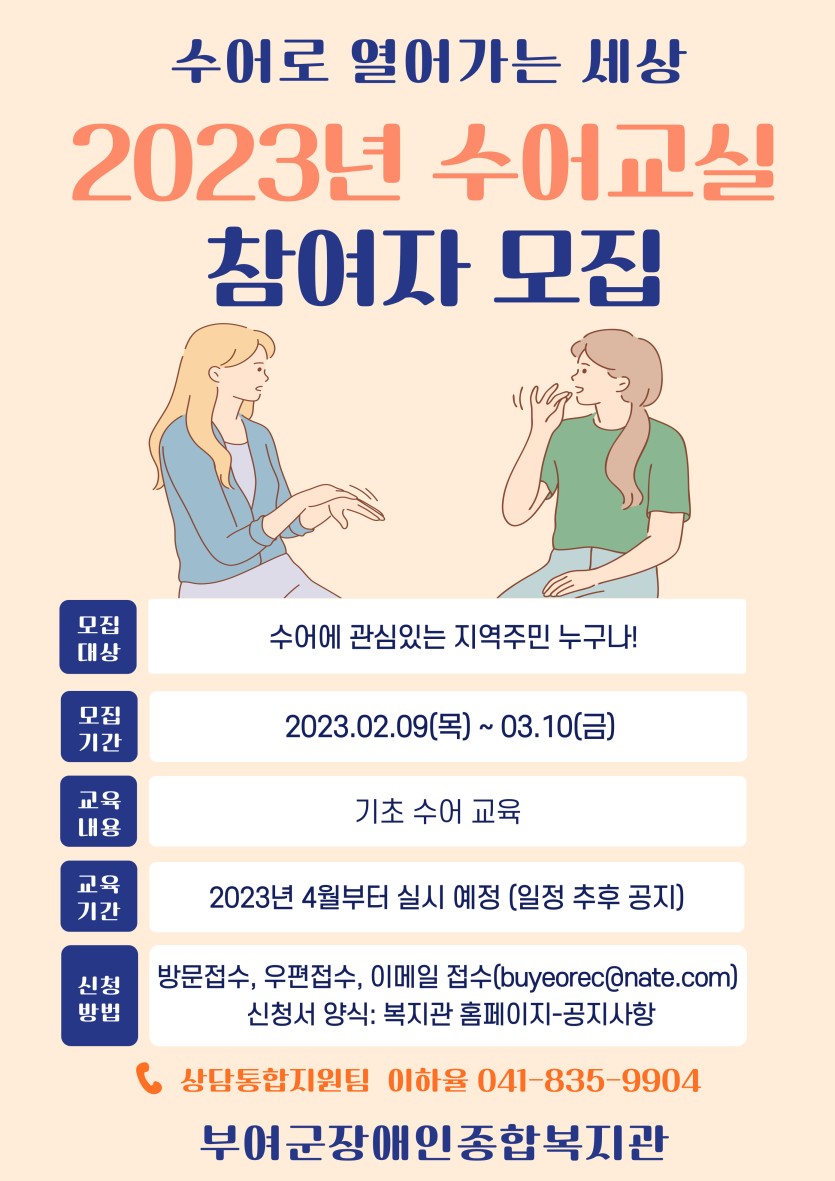 모집대상: 수어에 관심있는 지역주민 누구나!